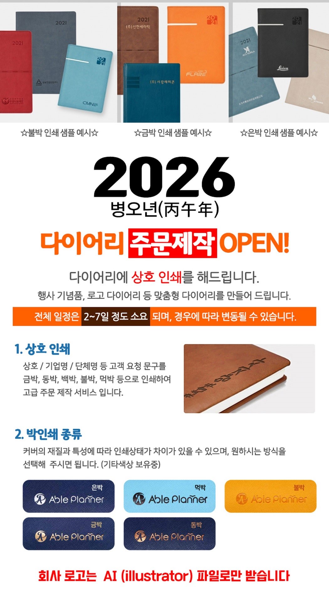 - Àμ⸦ ÇϽô °æ¿ì, ´ç»ç¿¡¼´Â °í°´´ÔÀÌ º¸³»ÁֽŠ¿ø°í ¹× µµ¾ÈÀ» ±âº»À¸·Î ÇÏ¿© Çʸ§À» Á¦ÀÛÇϰí, Á¤È®¼ºÀ» ±âÇϱâ À§ÇØ °í°´´Ô°ú ÀçÈ®ÀÎ ÈÄ ½ÇÁ¦ Àμâ ÀÛ¾÷À» ÇÕ´Ï´Ù. (ÃÖÁ¾ µðÀÚÀÎ ½Ã¾ÈÀÇ À߸øµÈ È®ÀÎÀº Ã¥ÀÓÀÌ ¼ö¹ÝµÇ¹Ç·Î Á¤È®ÇÏ°Ô È®ÀÎÇÏ¿© Áֽñ⠹ٶø´Ï´Ù.)